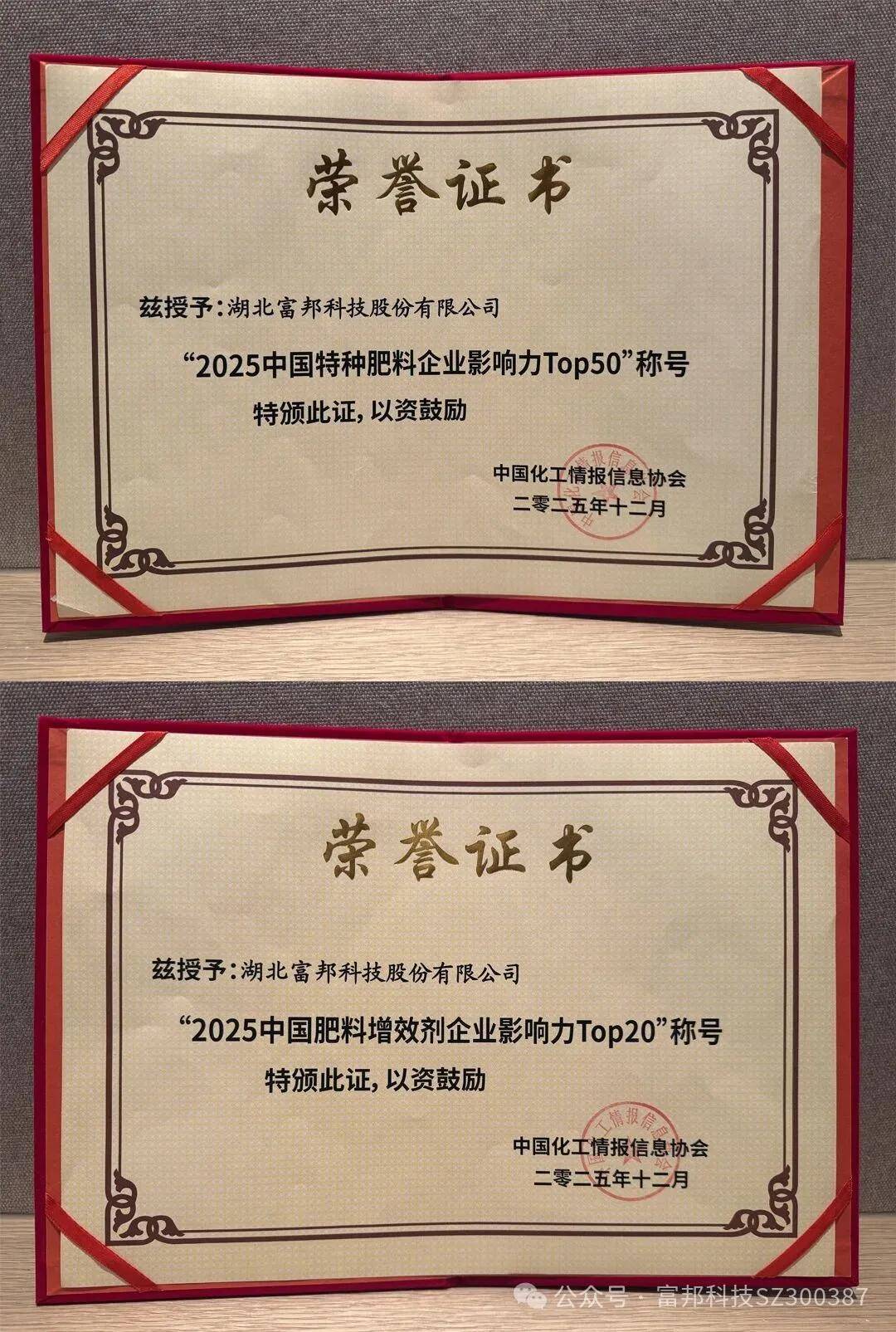 近日,在长沙举办的“2025化肥行业高质量发展会议”上,发布了“2025中国化肥企业影响力Top100■☆○”。湖北富邦科技股份有限公司同时入选 《中国肥料增效剂企业影响力Top20》与《中国特种肥料企业影响力Top50》。