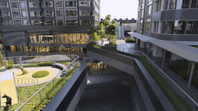 六个游园小景则围绕归家动线布置,涵盖宠物友好、儿童友好、社交、艺术与私享主题,使每一次步入社区都成为多感官的生活体验…•-.